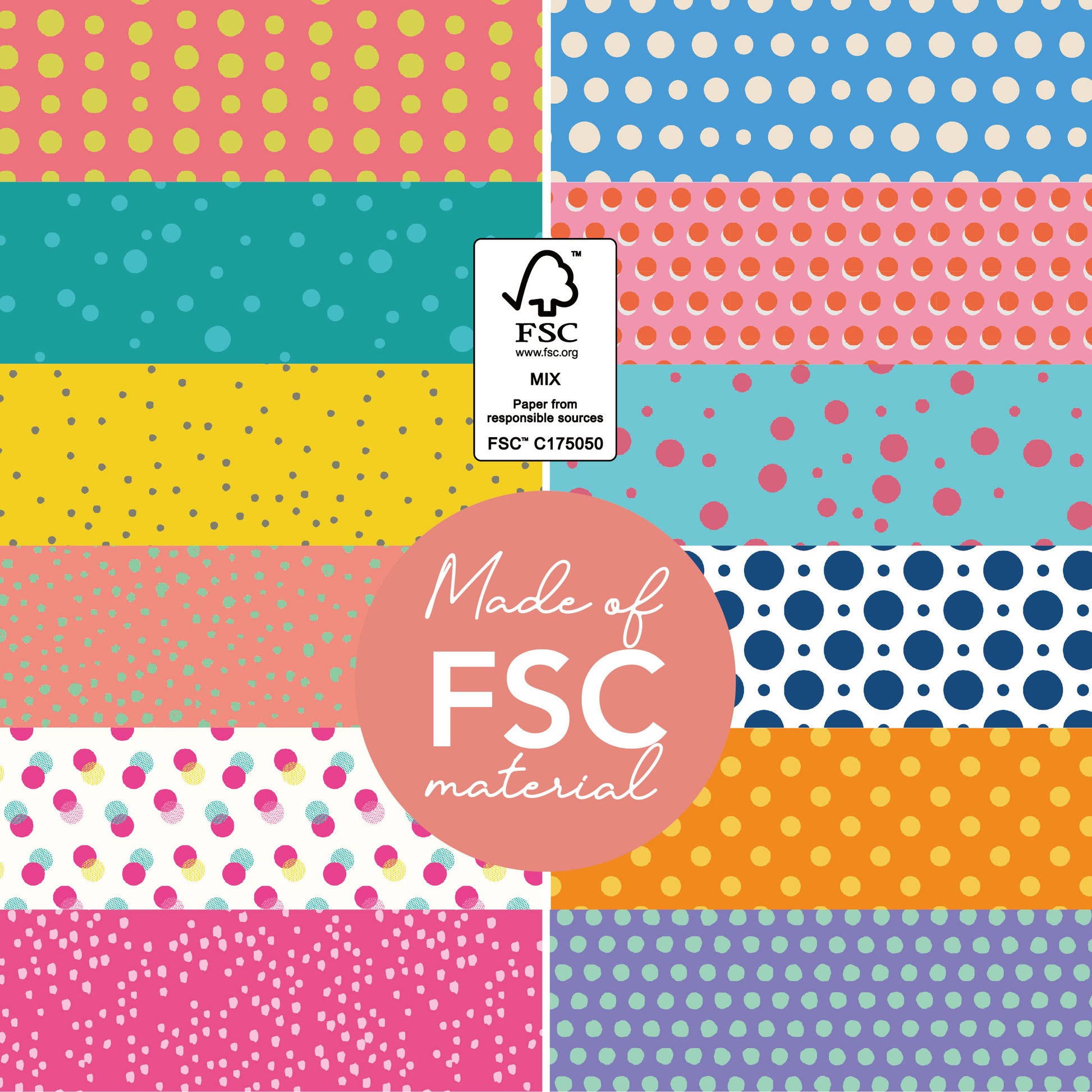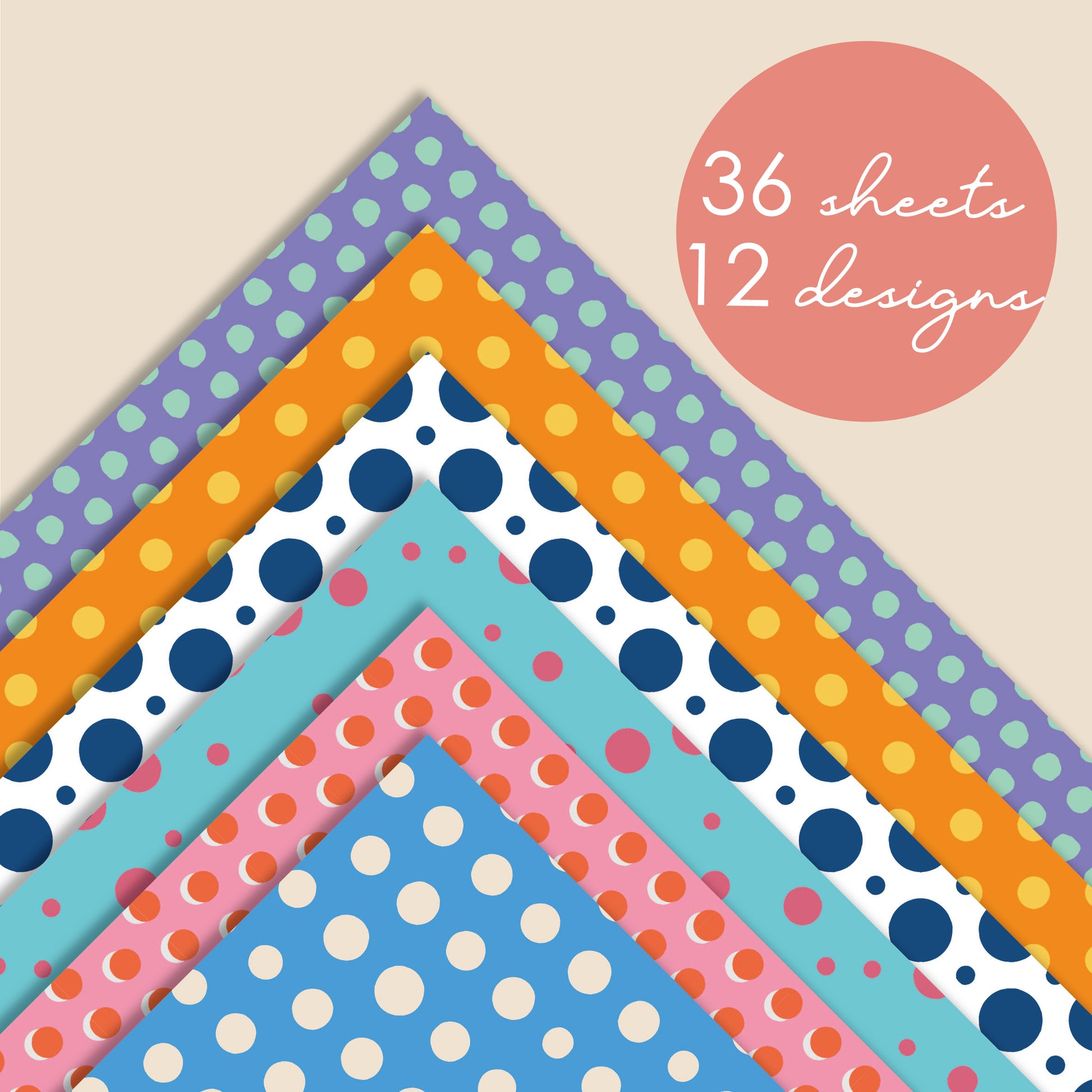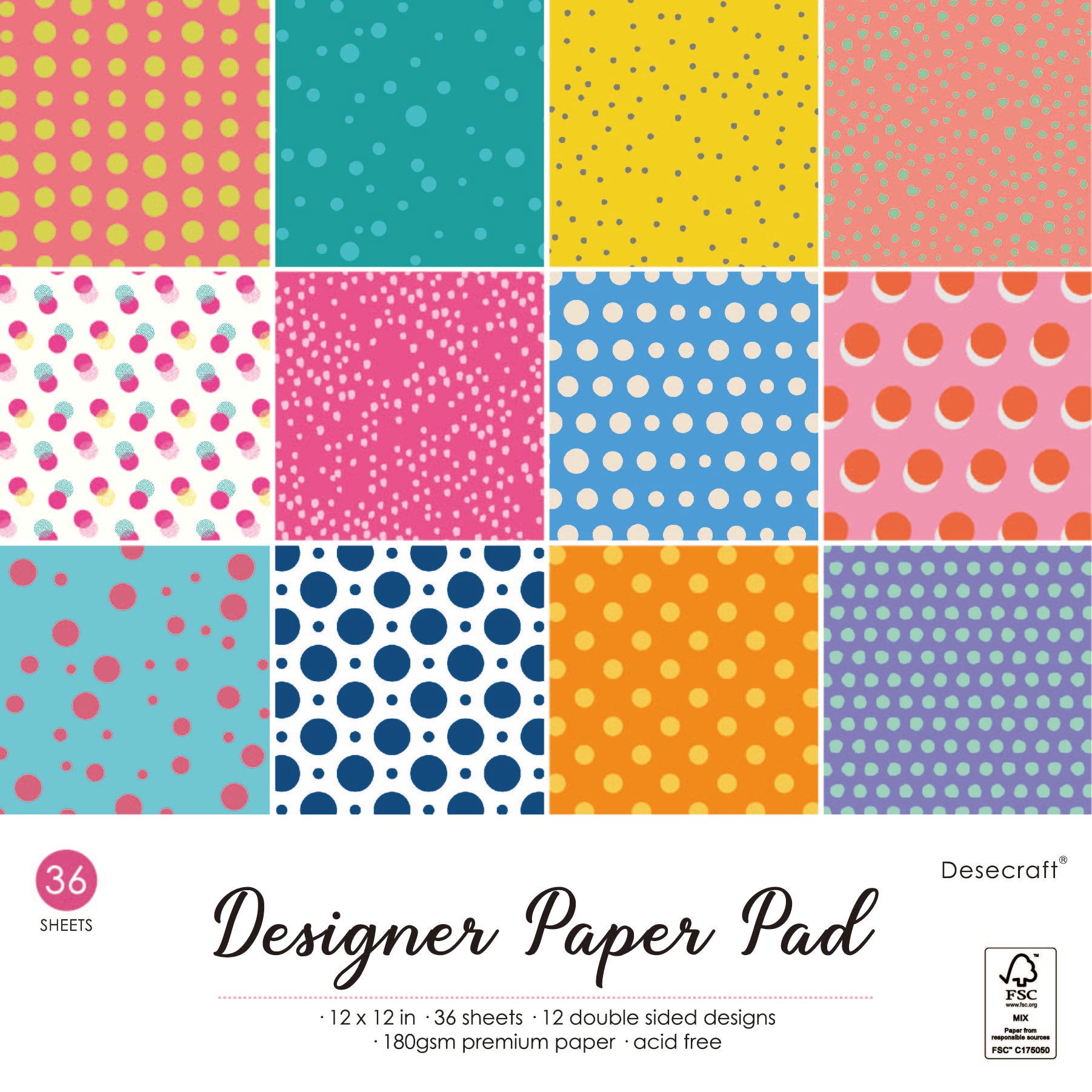 Desecraft Pastel Polka Dot 12x12 in Double Sided Paper Pad Pack Scrapbook Cardstock Decorative Paper - 36 Sheets