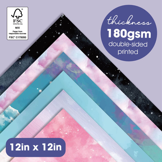Desecraft 12x12 Shimmer Dream Watercolor Cardstock Scrapbook Paper - 36 Sheets