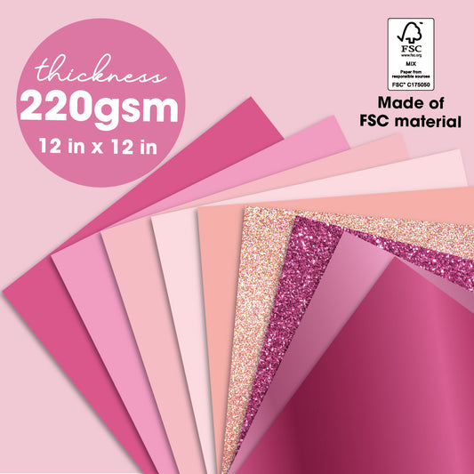 Desecraft 36 Sheets Dalentines Day 12x12 Cardbook Decorativstock Scrape Paper - 220gsm Pink Solid Glitter Shimmer