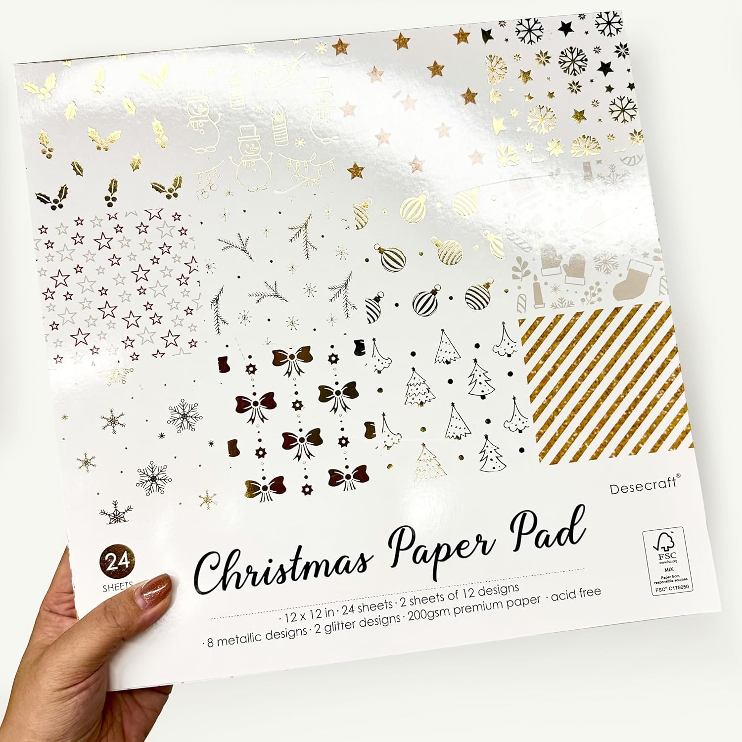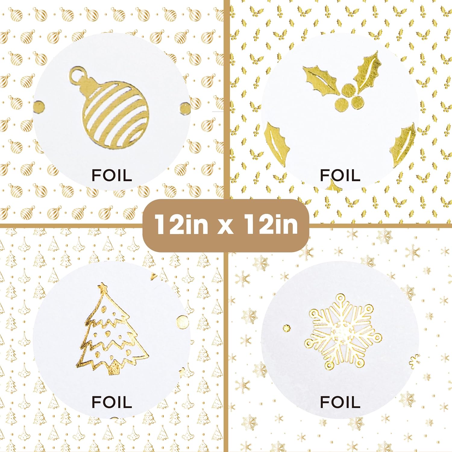 Desecraft 12x12 Metallic GOLD Christmas Scrapbook Cardstock Decorative Paper for Card Making Journaling Planner Origami Decopage Decorative Spring Scrapbook Paper