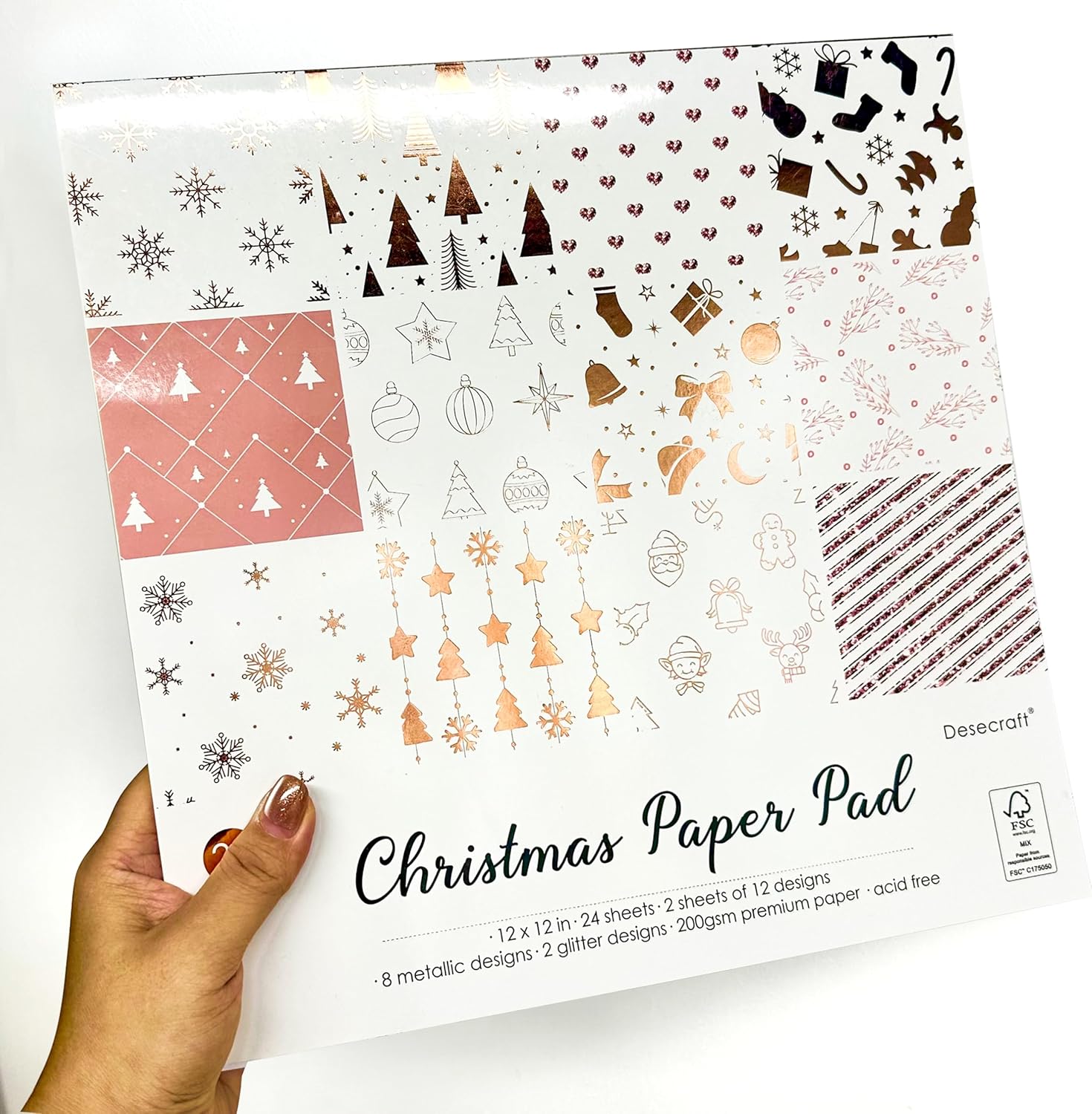 Desecraft 12x12 Metallic ROSE GOLD Christmas Scrapbook Cardstock Decorative Paper for Card Making Journaling Planner Origami Decopage Decorative Spring Scrapbook Paper